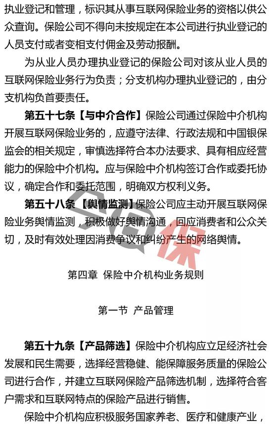 解读:新规明确了保险中介作为经营互联网保险业务的两大主体之一,在新规中对中介进行了进入门槛、以及全流程的细化规定。