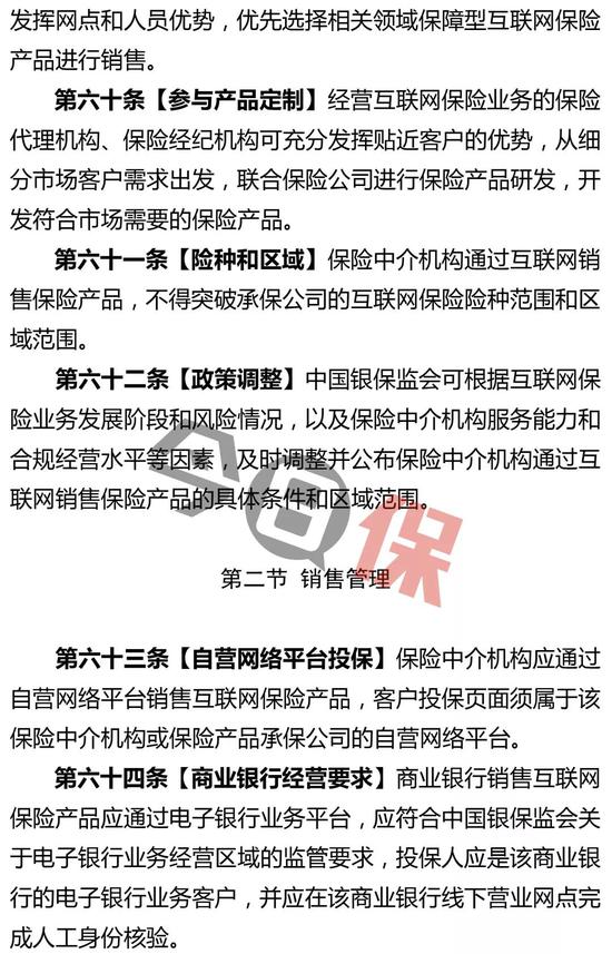 2. 销售管理。规定了投保页面、商业银行销售、客户告知书等。