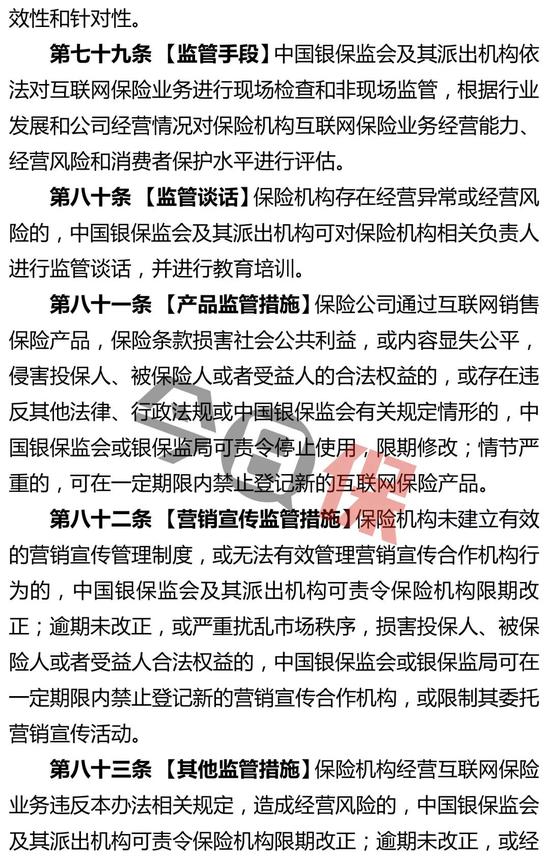 二是丰富监管措施,包括监管谈话、责令改正、责令暂停部分或全部互联网保险业务等。