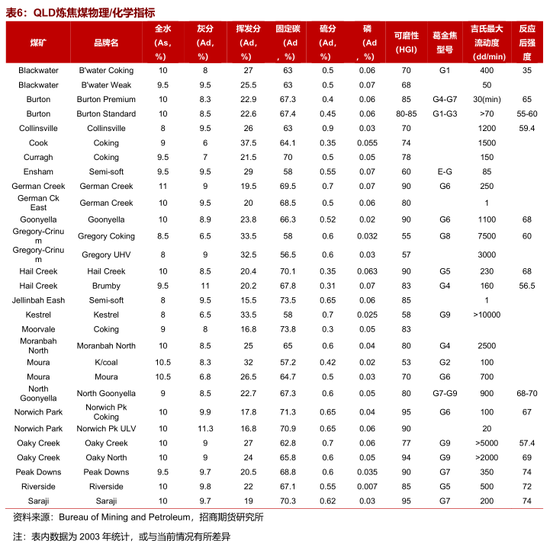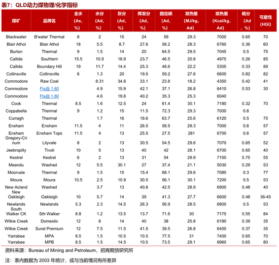 从煤质上来看,QLD境内炼焦煤低硫低磷且均为较佳配煤煤种,对应国内主焦、肥煤以及1/3焦;动力煤多数为高卡低硫煤种。