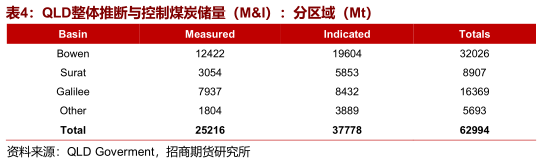 按分布区域来看,QLD境内煤炭主要分布于Bowen、Galilee、Surat Basin,储量分别占QLD的50.84%、25.99%和14.14%。