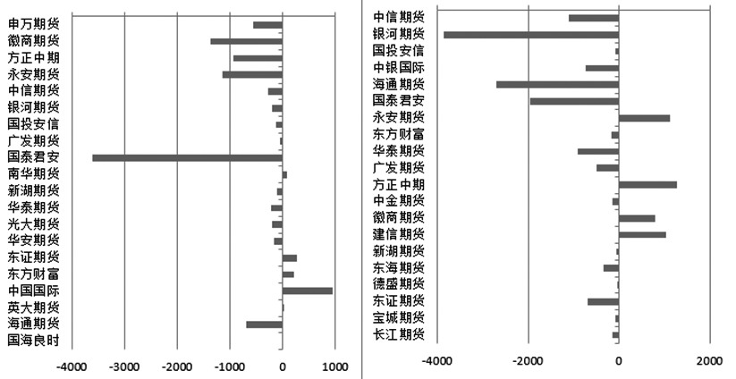 相反,国泰君安席位当日在大幅减持3619张多单的同时仅减持1951张空单,净空单增加至3635张;新湖期货席位在减持114张多单的同时仅减持53张空单,净多单减少1036张;国投安信席位当日在多头持仓上的减持幅度亦大于在空头持仓上的减持幅度。以上数据显示,这部分席位对后市更倾向于悲观。