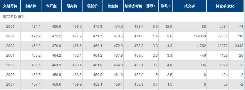 期货合约和成交情况一览