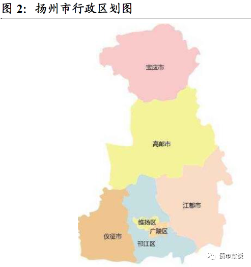 扬州市下辖3个区(邗江区、广陵区、江都区)、2个县级市(仪征市、高邮市)、1个县(宝应县)。其中,邗江区、广陵区和江都区被评为19年全国百强区,排名第24、36和59名;高邮市、仪征市评为2019年度全国综合实力百强县市,排名第62和69位。