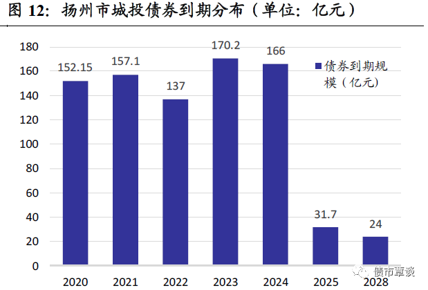 从城投债到期情况看,2020-2024年未来5年是偿债高峰,到期分布较为平均,在150-170亿左右。