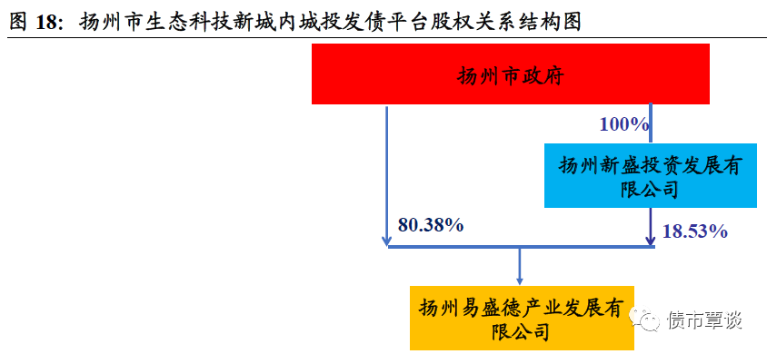 生态科技新城内有2家平台公司,分别为扬州新盛投资和扬州易盛德产业发展公司,负责生态科技新城基建、土地开发以及房地产业务等。
