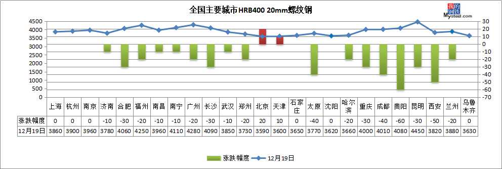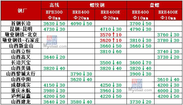 19日,13家建筑钢材生产企业下调出厂价20-60元/吨。