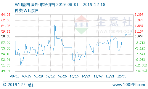 原油:周三(12月18日)WTI 2020年1月期货每桶60.93美元跌0.01美元/桶;布伦特2020年2月期货每桶66.17美元涨0.07美元。中国SC原油期货主力合约2002涨2.6至474.8元/桶。