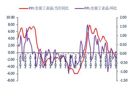 2019年10月份,PPI环比上升0.1%,同比下降1.6%。