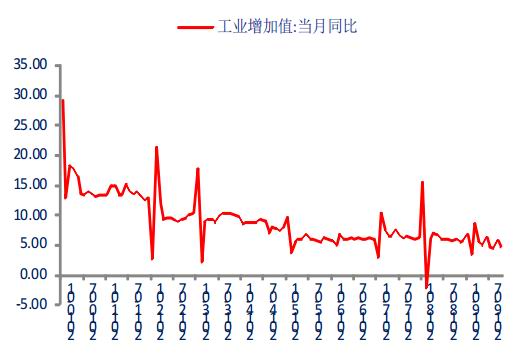 10月份,规模以上工业增加值同比实际增长4.7%,预期增长5.33%,前值增长5.8%。近期工业增加值波动明显加大,导致失去了可预期性,单期工业增加值可分析属性非常差。