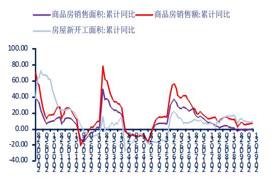 10月份,全国固定资产投资增速5.2%,比9月份下降0.2个百分点,预期增长5.4%。其中,10月份房地产开发投资同比增10.3%,比9月份下降0.2个百分点;10月份基础设施建设投资同比增3.26%,比9月份下降0.18个百分点;10月份制造业投资同比增长2.6%,比9月份上升0.1个百分点。房地产开发投资增速明显高于100大中城市土地成交面积增速,同时虽然和房屋新开工面积可以一定程度上对应上,但是目前房地产开工疑似呈现出打完地基就停工的现象,可能和预售和房地产开发贷要求有关,实际的投资建设情况跟数据相去甚远,因此房地产投资可能存在高估且未来下行空间非常大。