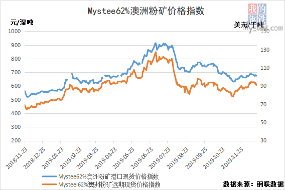Mysteel62%澳粉矿港口现货价格指数为675元/吨,较19日跌4元/吨。