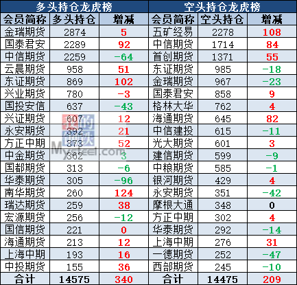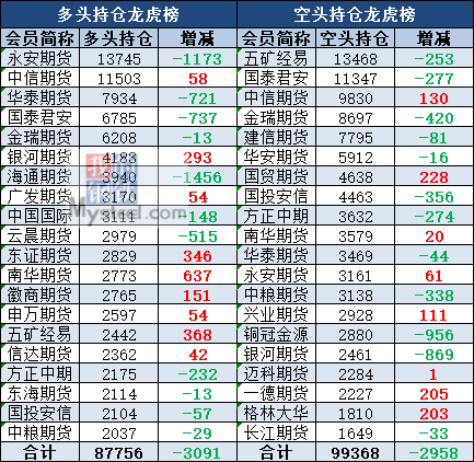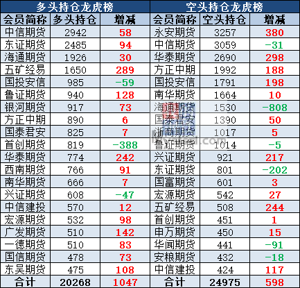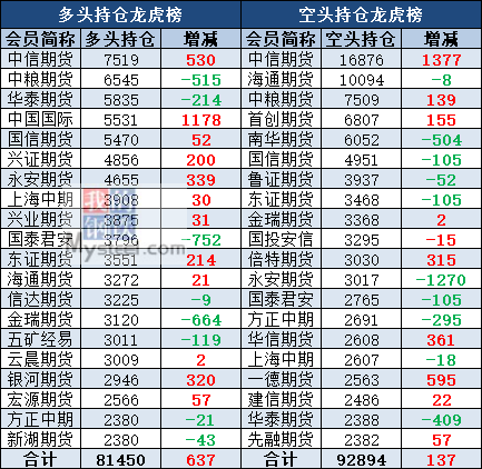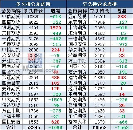 截至12月20日收盘,沪铜2002收49030,跌0.02%;沪铝2002收14175,涨0.14%;沪锌2002收18110,涨0.67%;沪铅2002收14985,跌0.23%;沪镍2002收111740,涨2.12%;沪锡2005收139520,跌0.27%。各品种持仓情况具体如下: