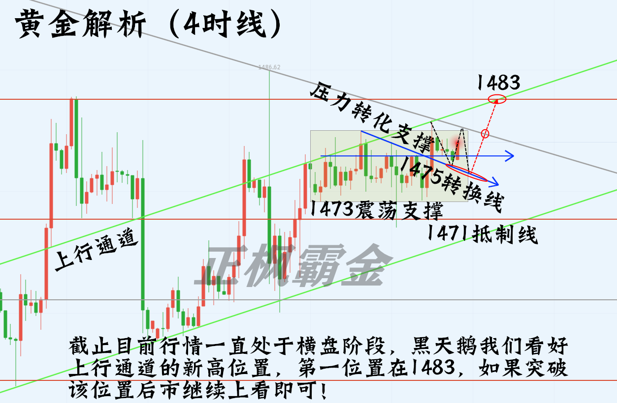 目前黄金运行在1479附近,从前期的上行通道看,行情已经运行至上行通道的中部,短线上1475作为震荡的转换线可一看做起跳点!其次就是强压线的位置,在1480附近,该位置一旦失守直线看至1483,破位再看新高,今晚后续的走势我们看好行情上破爆发,因此空单择机入场,低位在1475-1473分别是进多的好时机。更多变盘调整可在文末查找交流方式。