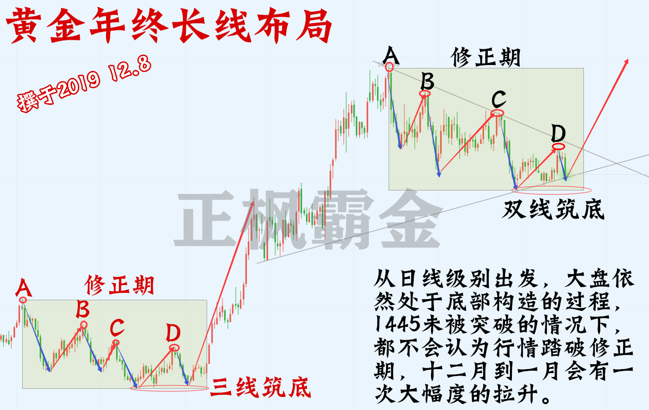 本次做出了年终的长线布局,从日线级别出发,目前黄金正处于修正期的末尾端,而从市场消息上看,11月的非农受到了通用公司罢工结束,大量工人重返岗位的影响,也有年底销售季大量临时工作岗位增加的影响,所以对于国际金的走势来说,上涨的预期也依然没有改变。只要下方没有突破1445,都不会认为本次的修正能改变大趋势,预计在十二月到一月依旧会有大幅度的拉升。(交流方式文末见)