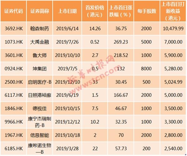 整体看来,今年港股打新赚的可能性较大,今年上市首日最赚钱新股为翰森制药,每手赚10480港元,其次为大禹金融7000港元,鲁大师上市首日每手赚5900港元。
