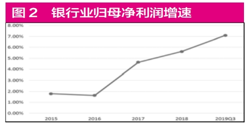 但是,银行盈利能力相比前几年已有显著提升(图2)。观察中证银行指数从2015年开始的归母净利润增速,银行业的低谷在2016年,从2017年开始整个银行业的净利润增速在稳步提升。2019年年报的净利润增速估计可以达到7%以上。2020年银行业的利润增速有望达到8%~10%。