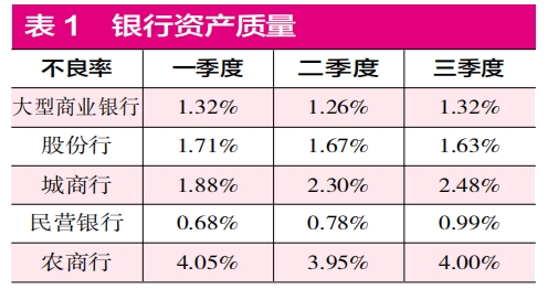虽然今年银行不良率前3个季度逐季走高,而且第3季度的不良率从2季度的1.81%跳升到1.86%,但如果观察各类银行的资产质量细节(表1),不难看出上市银行聚集的大型商业银行和股份制银行的资产质量是稳定甚至有所改善的。年内资产质量显著恶化的是城商行,而且还要考虑其中爆雷的包商银行、锦州银行等。