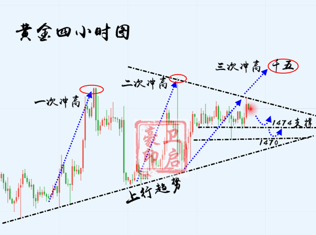 黄金下周一1474美金做多,止损1469美金,目标1484,1488,1495美金