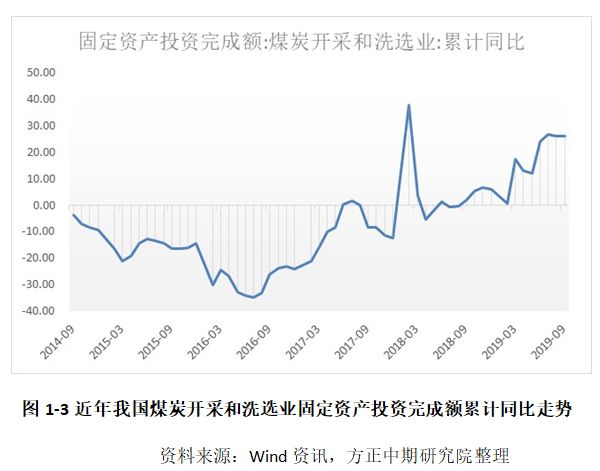从2019年的发展情况来看,经过五年的去产能洗礼,煤炭产业集中度进一步提升。一方面,煤炭行业去产能加快了大型煤炭企业的兼并重组,在行业形成了强强联合、强者恒强的竞争格局。另一方面,随着环保、安全生产、能耗控制等市场化措施的逐渐趋严,小型煤炭企业的生存空间被大幅挤压,在竞争中处于劣势地位。因此,以大型企业为代表的整体行业利润率在2019年环比有了较为明显的提升。另外,兼并重组也使得很多表外产能合法化,因此即便在去产能的大背景下,煤炭新增产能的释放依然是非常可观的,这一点我们从煤炭开采洗选行业的固定资产投资完成额的增长中也可明显看到。