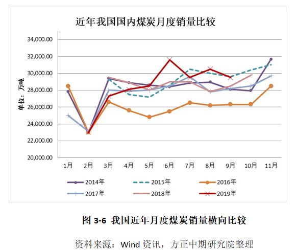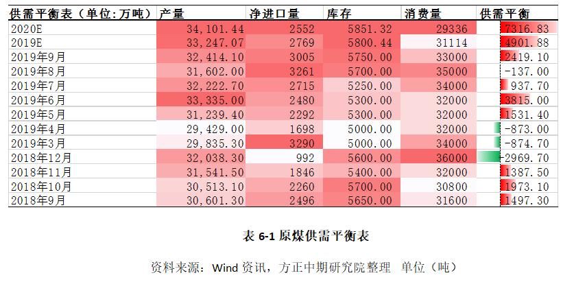 9月份全国煤炭销量完成2.95亿吨,同比增加1000万吨,增加3.5%。1-9月份全国煤炭销量累计完成22.8亿吨,同比增加0.43亿吨,增加2.12%。2019年,发改委明确提出“推动已承担产能置换任务、具备安全条件的优质产能项目,加快核准、加快开工、加快投产,持续扩大优质增量供给,促进煤炭行业新旧发展动能转换。到2020年,120万吨/年及以上大型煤矿产量占82%以上。”年初的安全事故所带来的停产影响随着时间的推移已经结束,进入下半年后在保供的主基调下,关停产能的复产以及先进产能的投产进入了高峰期。2020年,随着煤炭新增先进产能的进一步加快释放,煤炭供应格局还将维持宽松局面,在进口煤正常进入的前提下,煤炭市场将继续向供大于求倾斜。
