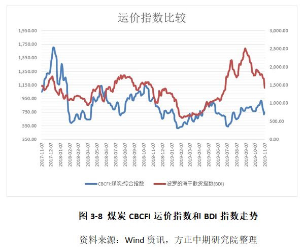 总的来说,2019年动力煤供给前紧后松,一季度供小于求,从二季度开始基本就是逐渐往供过于求转变。除去汛期动力煤再度供小于求以外,整体上宽松格局不变,并且宽松程度愈加剧烈。即便是到了年底的旺季,由于下游高库存叠加上游产能释放,供大于求的情况依然未变。未来这一供求比还将基本维持相同走势,在需求增速放缓后,供应增量会较为显著。