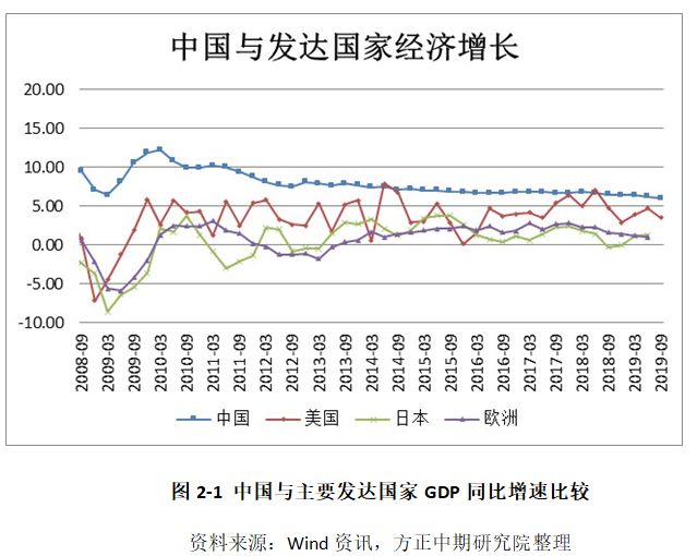 从最新公布的三季度GDP情况来看,2019年三季度实际GDP同比增长6%,弱于前值6.2%,也低于预期的6.1%;三季度实际GDP环比增长1.5%,较前值1.6%出现下降,但是符合预期。一至三季度实际GDP累计同比增长6.2%,符合预期,较前值6.3%有小幅回落。此外,三季度名义GDP同比增长7.57%,比二季度的8.3%有所减速。三季度GDP平减指数从2.1%下降至1.57%。