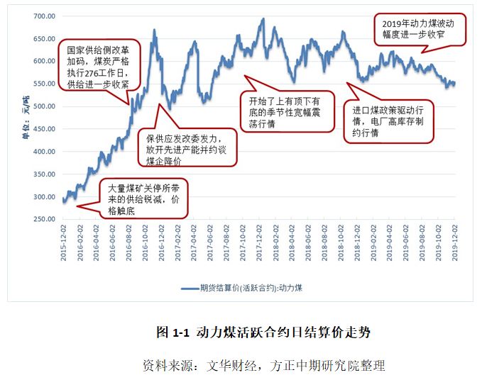 2019年撇开年初的安全事故所带来的阶段性影响外,动力煤经历了不温不火的一年,在涨势持续了4个月后,供给端的持续宽松终于给盘面带来了阶段性的反转。这种压力一直持续了整个2-3季度。旺季对于动力煤来说由于水电的强势以及进口煤的挤压已经不再是上涨的代名词,更多的还是事件因素所带来的阶段性波动。到了下半年,动力煤更是再也承受不住弱需求的压力,开始了长达半年的震荡走弱的局面。