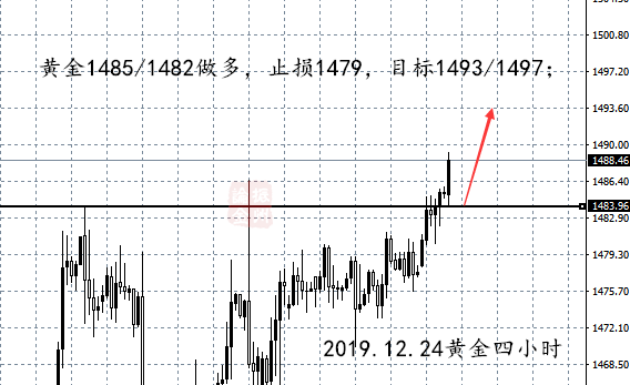 黃金1485/1482做多,止損1479,目標1493/1497;