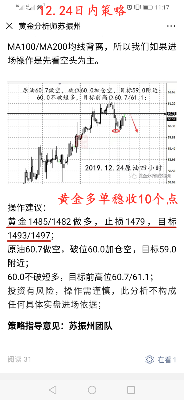原标题:苏振州:12.24黄金策略低位多,10个点完美止盈! 来源:24K99