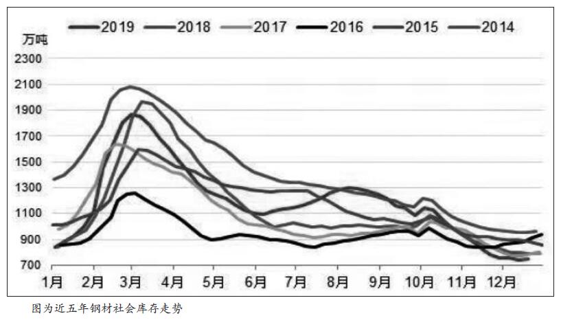 从供需层面看,今年11—12月中旬,全国天气条件比较好,北方部分地区开工较多,南方地区的工地更是处于全面赶工期,力求春节前尽量多交付,造成钢材短期需求集中爆发,而产量没出现相应的增量,供需出现错配,叠加12月初国家出台的稳增长政策提振市场预期,钢材迎来了一波大涨行情。但进入12月下旬,天气开始降温,加之今年春节提前,工期将提早结束,季节性成交趋淡已成不争事实。11月新开工面积增速为-2.9%,近20个月以来首次出现负值,在一定程度上体现出房地产市场对后市消费预期的转淡。11月份粗钢日均产量同比环比都在增加,12月上旬重点钢企粗钢产量也没有下滑的迹象。据中国钢铁工业协会统计数据,2019年12月上旬重点钢企粗钢日均产量196.72万吨,旬环比增加0.25万吨,增长0.13%,表明供应端总体呈现强势。