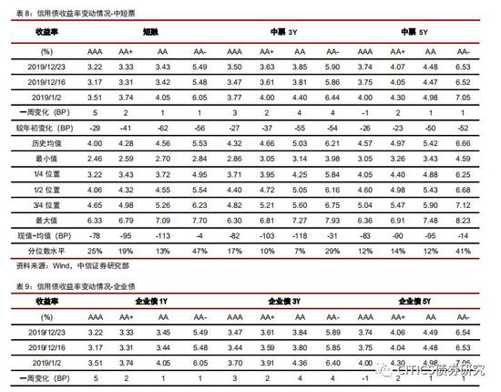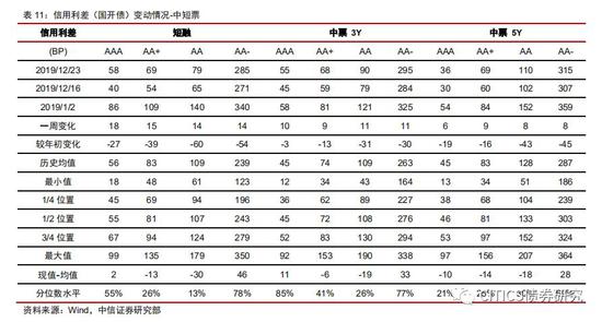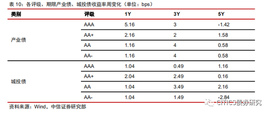收益率方面(12.16-12.20):(1)短融收益率涨跌互现,三年、五年期的中票收益率上行。其中AAA中票1Y上行5bp,3Y上行3bps,5Y下行-1bps;AA中票1Y上行1bps,3Y上行4bps,5Y上行1bps;AA-中票1Y上行1bps,3Y上行4bps,5Y上行1bps。(2)企业债收益率基本上行。AAA企业债1Y上行5bp,3Y上行3bps,5Y下行-1bps;AA企业债1Y上行1bps,3Y上行4bps,5Y上行1bps;AA-企业债1Y上行1bps,3Y上行4bps,5Y上行1bps。