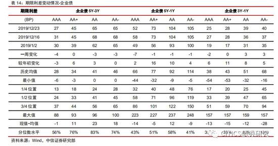 期限利差方面(12.16-12.20):(1)中短票期限利差涨跌互现。其中AAA中票5Y-3Y下行4bps,5Y-1Y下行7bps,3Y-1Y下行2bps;AA中票5Y-3Y下行3bps,5Y-1Y下行1bps,3Y-1Y上行3bps;AA-中票5Y-3Y下行3bps,5Y-1Y下行1bps,3Y-1Y上行3bps。(2)企业债期限利差涨跌互现。其中AAA企业债5Y-3Y下行4bps,5Y-1Y下行7bps,3Y-1Y下行2bps;AA企业债下行3bps,5Y-1Y下行1bps,3Y-1Y上行3bps;AA-企业债5Y-3Y下行3bps,5Y-1Y下行1bps,3Y-1Y上行3bps。