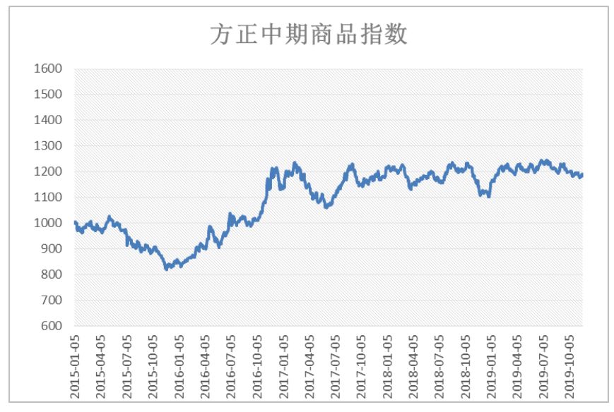 方正中期商品指数年末收于收于1192.01上涨4.09%,其中,表现最好的是金属镍期货上涨31.01%,表现最差的是苹果期货下跌25.71% 。