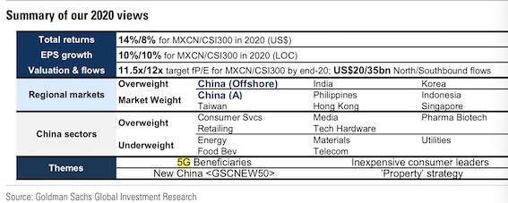 原标题:高盛看2020:标配A股,关注消费、周期和5G