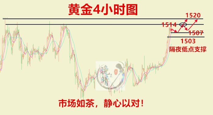 操作建议:黄金1507附近做多看涨,1505补仓多,止损1501,目标看1514,破位持有看1520。