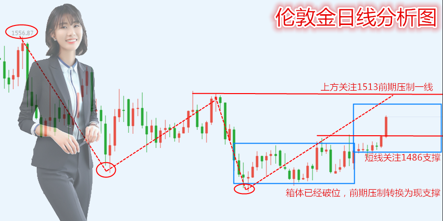 空单计划:金价1514-1512进场,止损4个点,目标1497-1495.