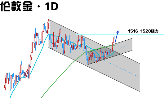 2、黄金经过周五的上涨后,受阻于前期高点1516一线受阻承压回落,后市重点关注1516-1520一线阻力的突破情况,进一步上涨需有效消息面来支撑,若无法破位,黄金将短暂持于1500上方高位区间运行。