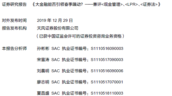 文章来源:《大金融能否引领春季躁动?——兼评 现金管理 、、 证券法 》(12月29日)