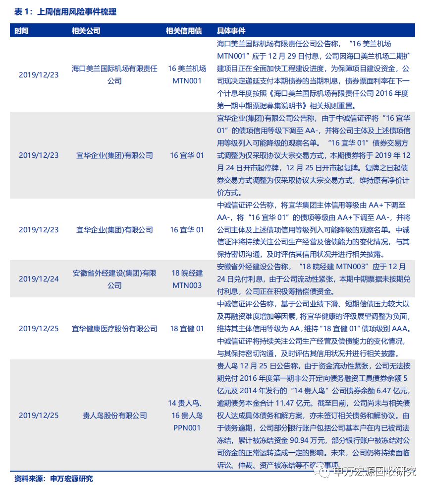 27 日央行、发改委、证监会发布债券违约处置征求意见稿,银监会发布 3 项配套文件,对我国现有的违约处置机制进行了完善。《通知》征求意见稿中主要有以下内容:1)明确债券违约处置的基本原则;2)充分发挥受托管理人和债券持有人会议制度在债券违约处置中的核心作用;3)建立健全多元化的债券违约处置机制,提高处置效率;4)加强监管协调,加大债券市场统一执法力度,加大对恶意逃废债行为惩戒力度。《处置指南》明确了市场参与各方的职责与权利,并提出了展期、置换、以其他方式清偿债务等多元化处置操作方式;《受托管理人指引》引入了受托管理人制度安排,明确受托管理人可代表投资人集中参与诉讼、破产等司法程序的主体资格,有助于提高违约处置效率;《持有人会议规程》相较于13年版主要变化有 1)本次持有人会议规程在应当召开会议的情形中由 13 年版本的 8 条扩充至 11 条,另外表述方面也有修改,整体来看召开持有者会议的情况结合近两年案例进一步扩充,“拟”字段的添加强调了投资者保护的前瞻性和及时性,强调了受托管理人的参与和律师的见证,保护投资者提出补充议案的权利,有利于更好通过及时召开持有者会议提高对投资者权益的保护。债券违约的一个征求意见稿和3个配套文件的发布,更多是基于制度建设层面。未来企业违约情况是否好转,最重要的是看实体经济能否企稳以及盈利能否企稳。2020年下半年是重要观察期。