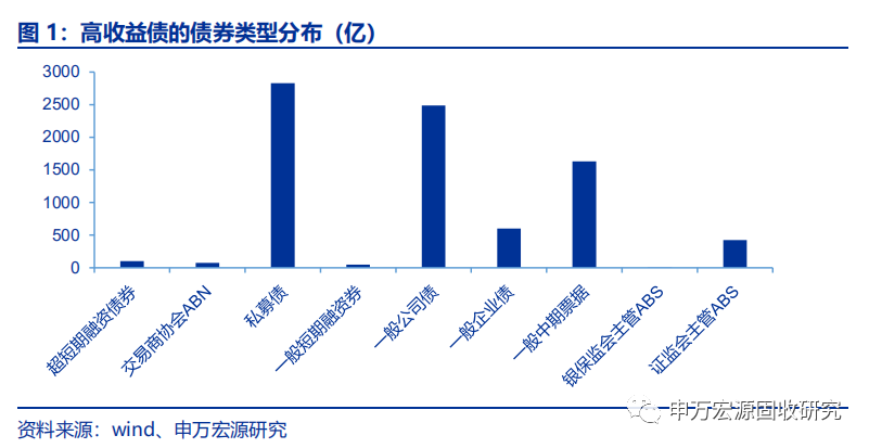 我们以中债估值收益率不低于 8%的信用债为高收益债,收益率数据日期为2019 年 12 月 27 日。经筛选,目前有约 1000 只高收益债,涉及 367 个发行人,债券余额超 8000亿。高收益债的具体分析详见专题《中国高收益债市场有多大?——债券违约回收系列专题之四》。