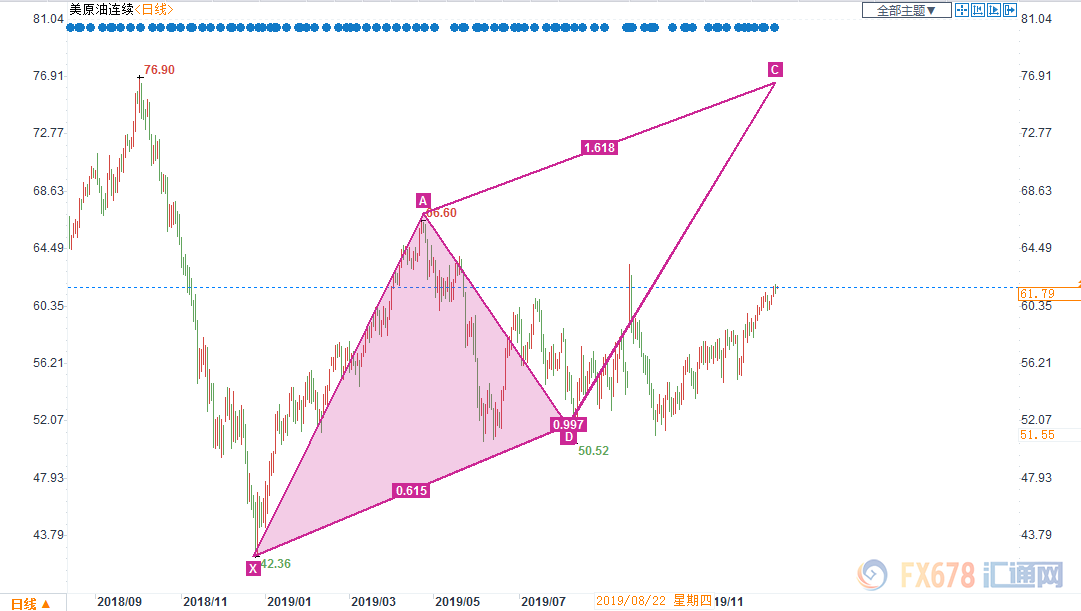 自2018年末原油大跌以来,日线图上原油价格在2019年已经初步形成了一个谐波形态。