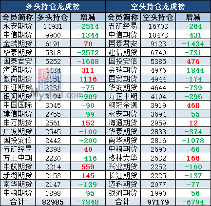 截至12月30日收盘,沪铜2002收49510,跌0.36%;沪铝2002收14090,涨0.21%;沪锌2002收18105,涨1.17%;沪铅2002收15185,跌0.23%;沪镍2003收111720,涨0.34%;沪锡2006收134800,跌2.27%。