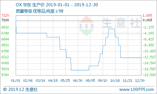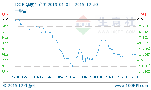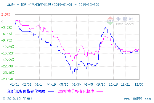 2019年下游DOP价格大幅走低,全年跌幅为14.07%,下游行业不景气是苯酐行业的一大利空影响,受此影响苯酐市场价格相应走低。