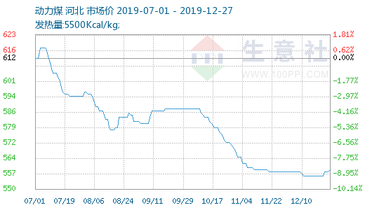 据生意社监测,本周(12.23-12.27)动力煤市场小幅上涨。周初动力煤价格在556元/吨左右,周末价格在559元/吨附近,周末较周初价格上涨0.54%。