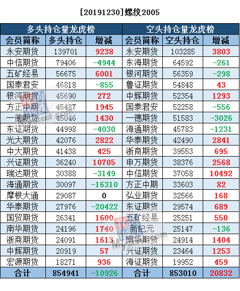 截至12月30日收盘,螺纹2005收3545,涨0.23%;热卷2005收3566,涨0.14%;铁矿石2005收641.5,无涨跌;焦炭2005收1861.5,涨0.05%;焦煤2005收1155,涨0.79%;硅铁2005收5836,跌0.07%;锰硅2005收6408,跌0.59%。