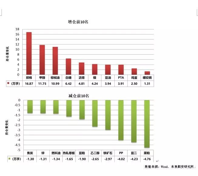 图4、5:各品种日增、减仓