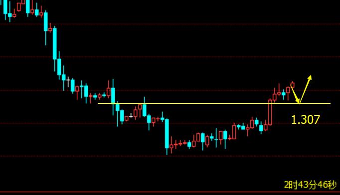 策略一:1.305-1.307附近多,止损1.303,目标1.310-1.316