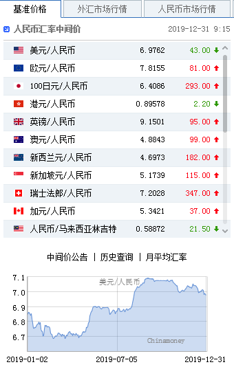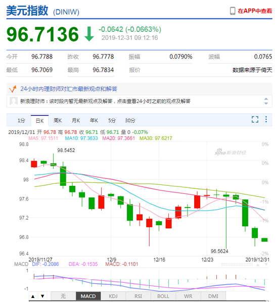 新浪财经讯 12月31日,美元指数持续走弱,人民币中间价报6.9762,上调43点,上一交易日中间价报6.9805,在岸人民币上一交易日收报6.9878。