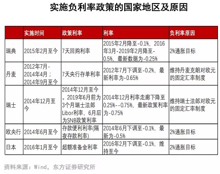 商业银行在央行的存款利率为负。目前世界上真正的负利率国家是日本、丹麦、瑞典、欧洲等国家和地区,如下图: